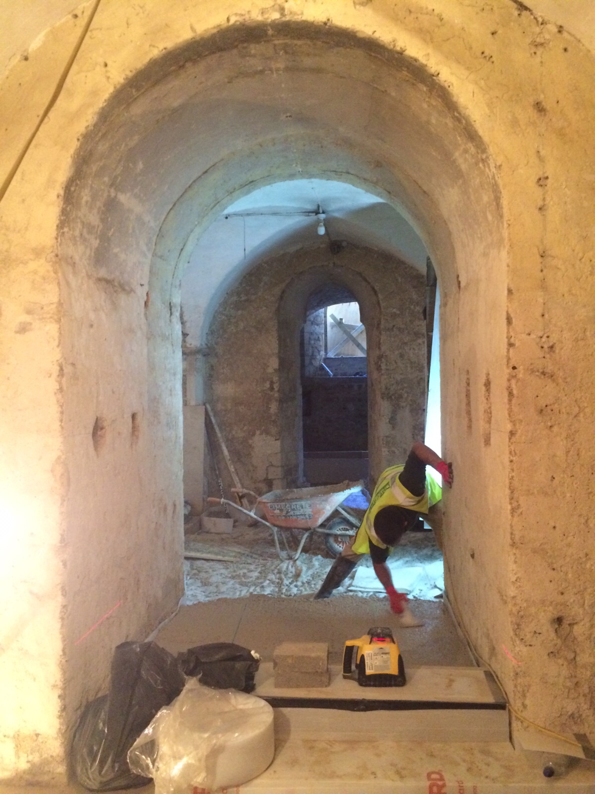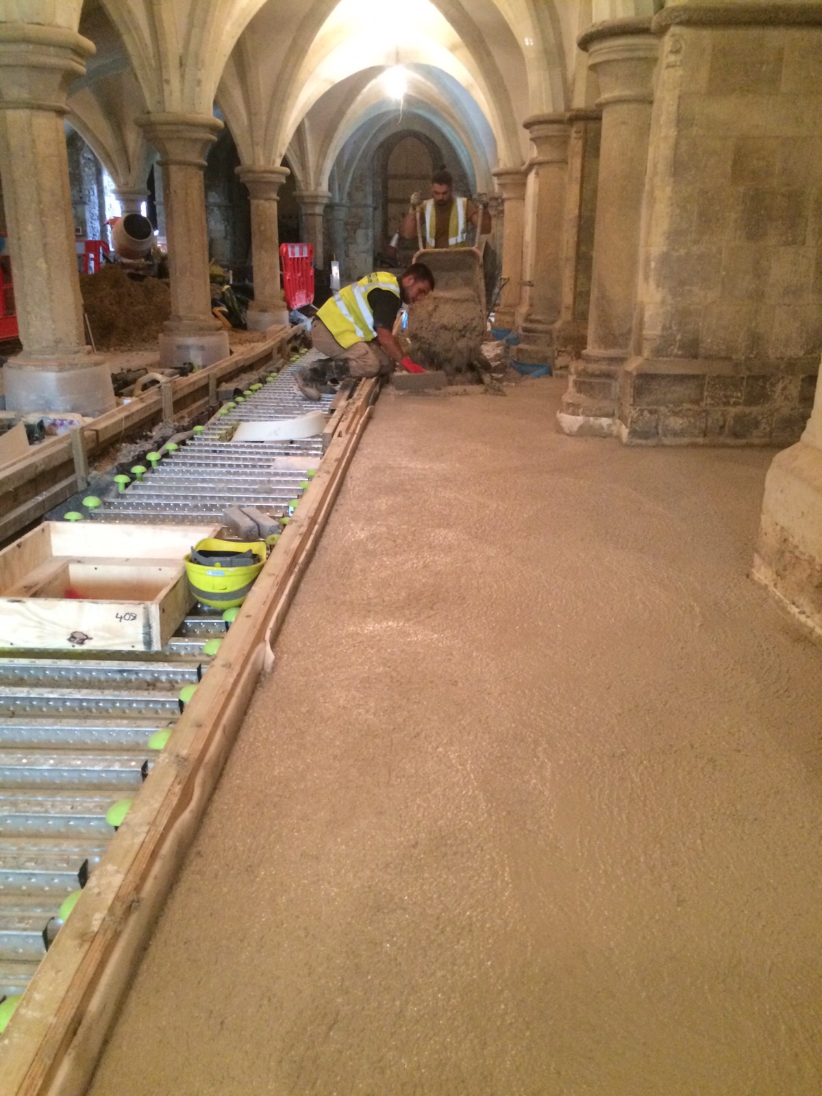 Another visit to Rochester Cathedral. A wonderful place to work. Continuing with the limecrete screeding.